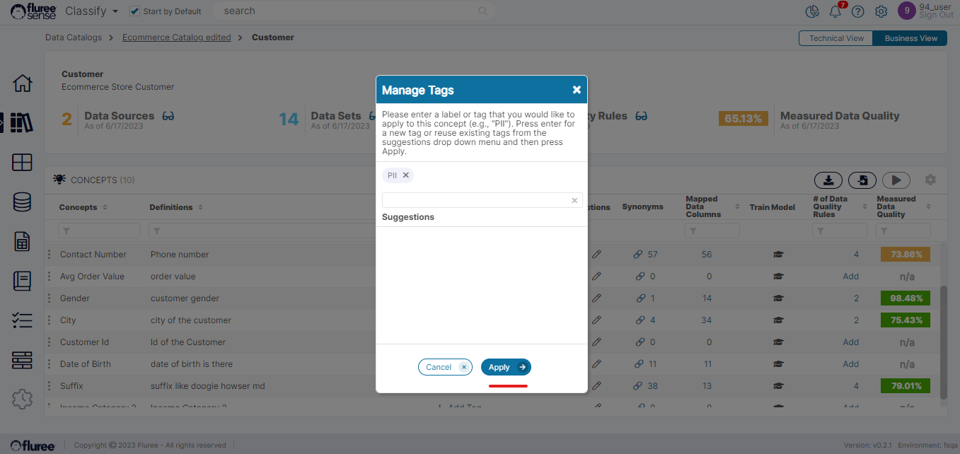 A user can also tag a Concept with a custom tag which is NOT the same as mapping it to a Dataset Column etc., but marking it with important searchable terms such as “PII,” “PHI,” etc. PII is in fact a system-provided Tag which has the special purpose of masking any data mapped to that Concept once the user tags it as such. Let us look at this in detail below.