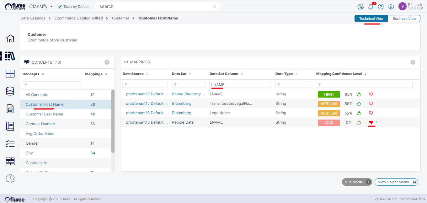 If you’ve followed the earlier sections, you will remember we had downvoted LNAME for People Data as an Ad-Hoc Mapping. We can see the same mapping here showing the downvote which confirms that this is just a different mapping view and can be used for feedback like the way we used the Business View in ad-hoc mappings.