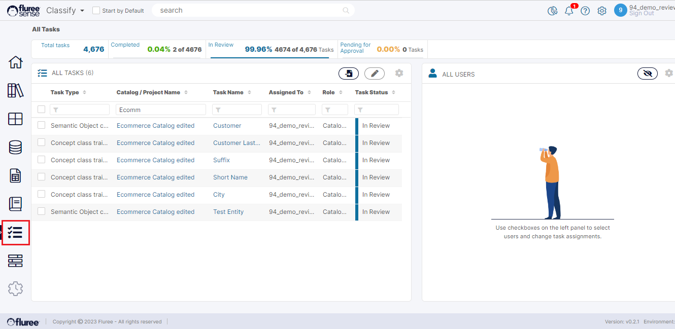 | 3. All Tasks | Any Task assigned to the Logged-in user AND any Task belonging to the Project or Catalog of which the logged-on user is having an Admin role. | It may be a Task, which is now in Completed Status as well. |