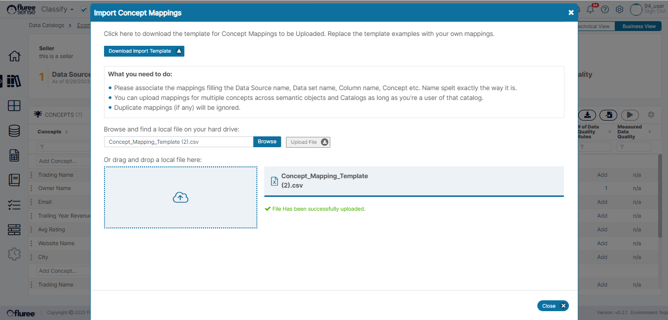 This will mainly be in CSV file format throughout the application. Note that example Mappings may be shown in the template; please delete them before using the template. As long as the names are spelt correctly and the user has Catalog Admin rights, the user can import the mappings from any of the four types of screens mentioned earlier.