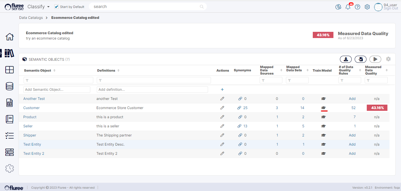 Step 1: Click on the Catalog Name which contains the Semantic Object you wish to Train