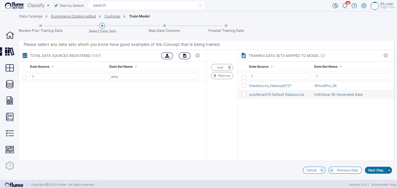 Once the user selects the Data set(s) that they want to use for Classifying the Semantic Object, the Next Step button will be enabled in the bottom right of the screen. The user can click it to move to the next screen.