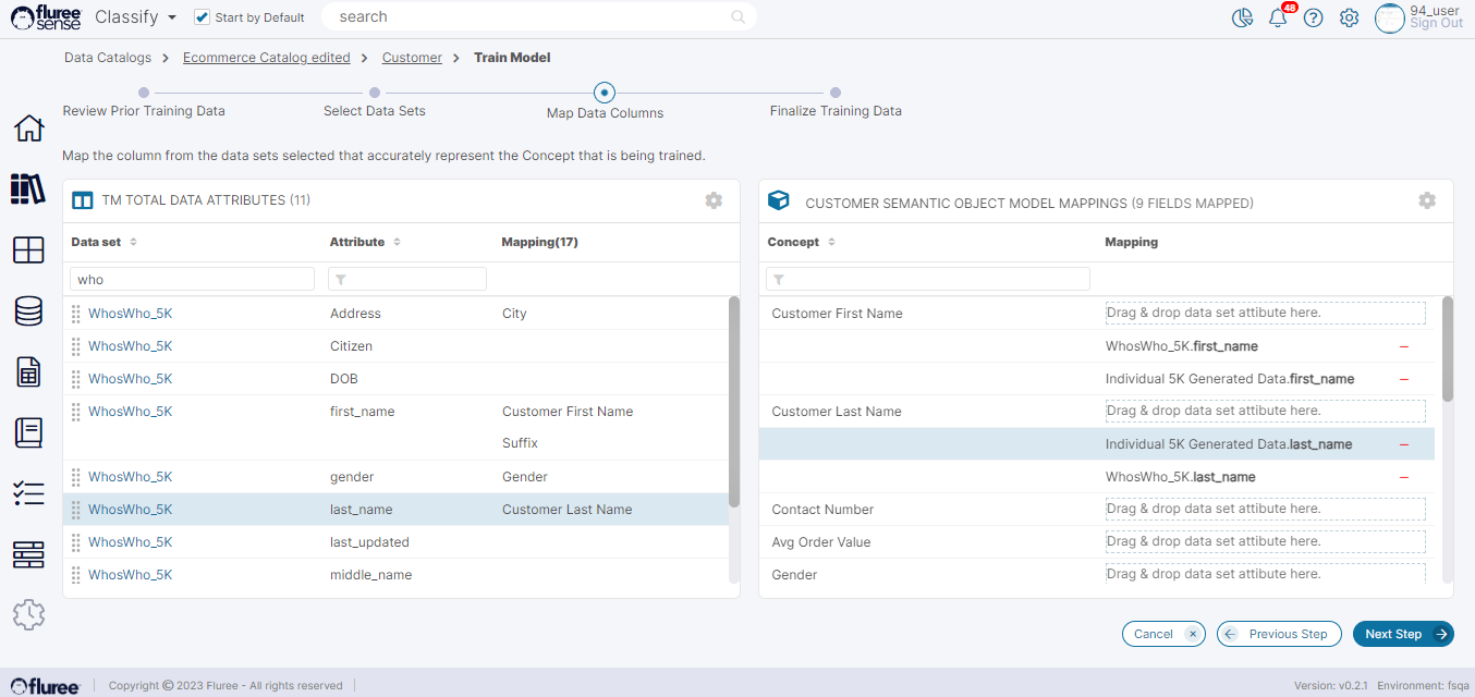 Step 4: Drag and Drop Columns to the appropriate Concepts of that Semantic Object