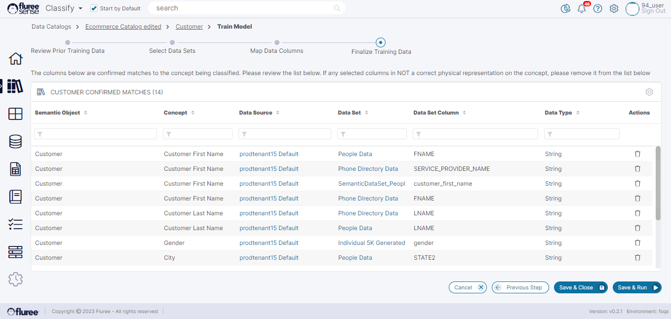 On clicking the ‘Next Step’ button, the user is directed back to the original training page, which now will show all the mappings of the Semantic Object.