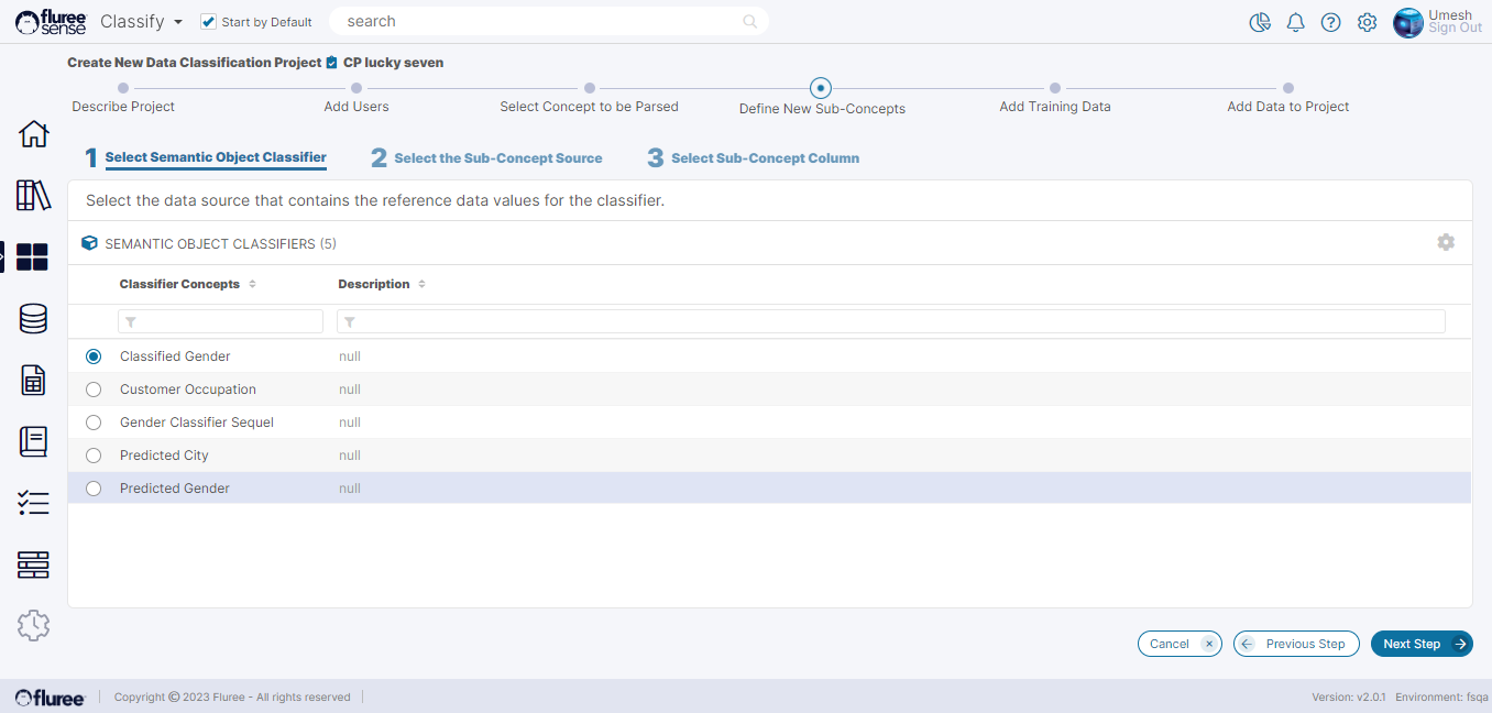 Step 4: Select the Sub-Concept Classifier, it’s Source and Column