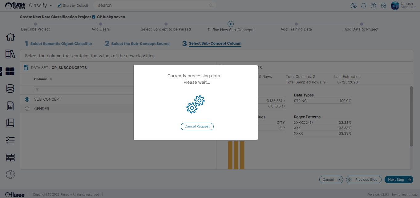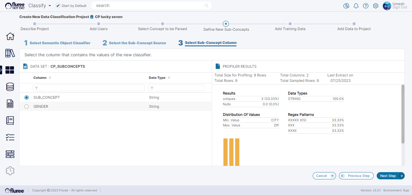 3. Once the Data Set is decided, the user must select a single column, which contains the values of the Sub-Concept.