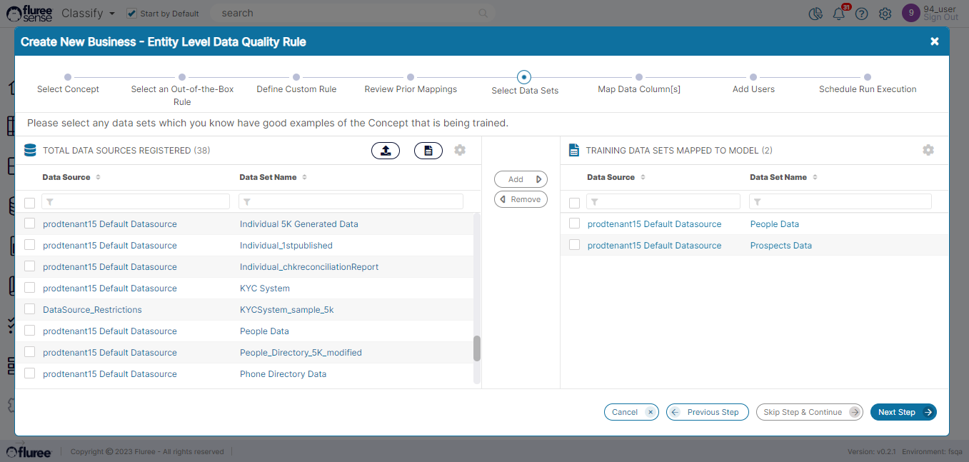 Select Data Sets for any new columns to be associated with concept(s) in the exception OR the primary concept for the Rule. This feature is available so that there is flexibility before running of the rule for the user to review and add additional mappings if felt required, which can then be considered during running of the rule.
