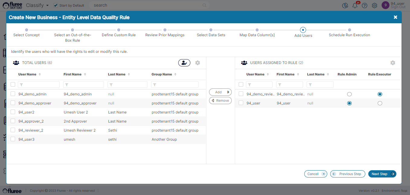 Step 7. Add Users: As we’ve seen with other Objects / Elements of the system, it is important to define the entitlements for specific users in terms of data quality rules.