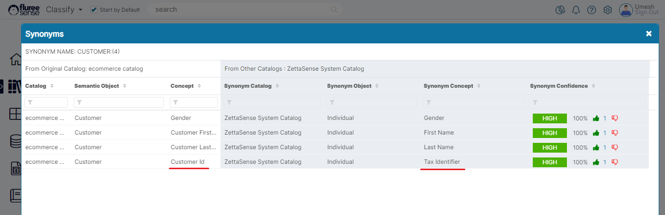 The user should close the pop-up, if not auto closed, and review the results for the appropriate Concepts in their respective Semantic Objects. In our case, we just added one Synonym to an existing set of 3 for the Semantic Object - Customer.