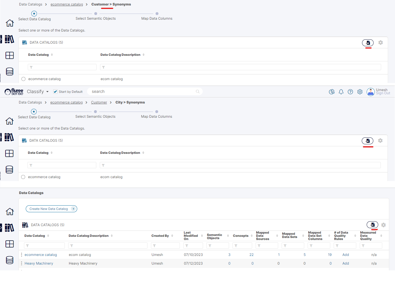 1. First workflow screen for creating Synonyms at Catalog Level for single Semantic Object.