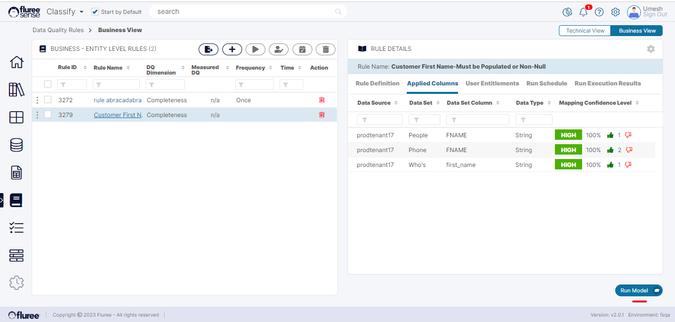 Let’s circle back to the point when we were Creating a Business Rule. If you recall, in that flow we were able to review the existing Data Columns mapped to the primary Concept of that rule. We could also add and remove mappings so as to re-adjust the Concept’s model before running or scheduling a Data Quality rule. This ability is provided as a flexible add-on feature for users.