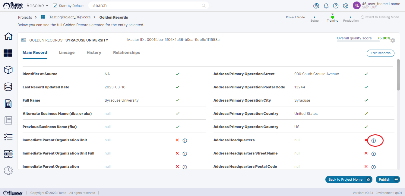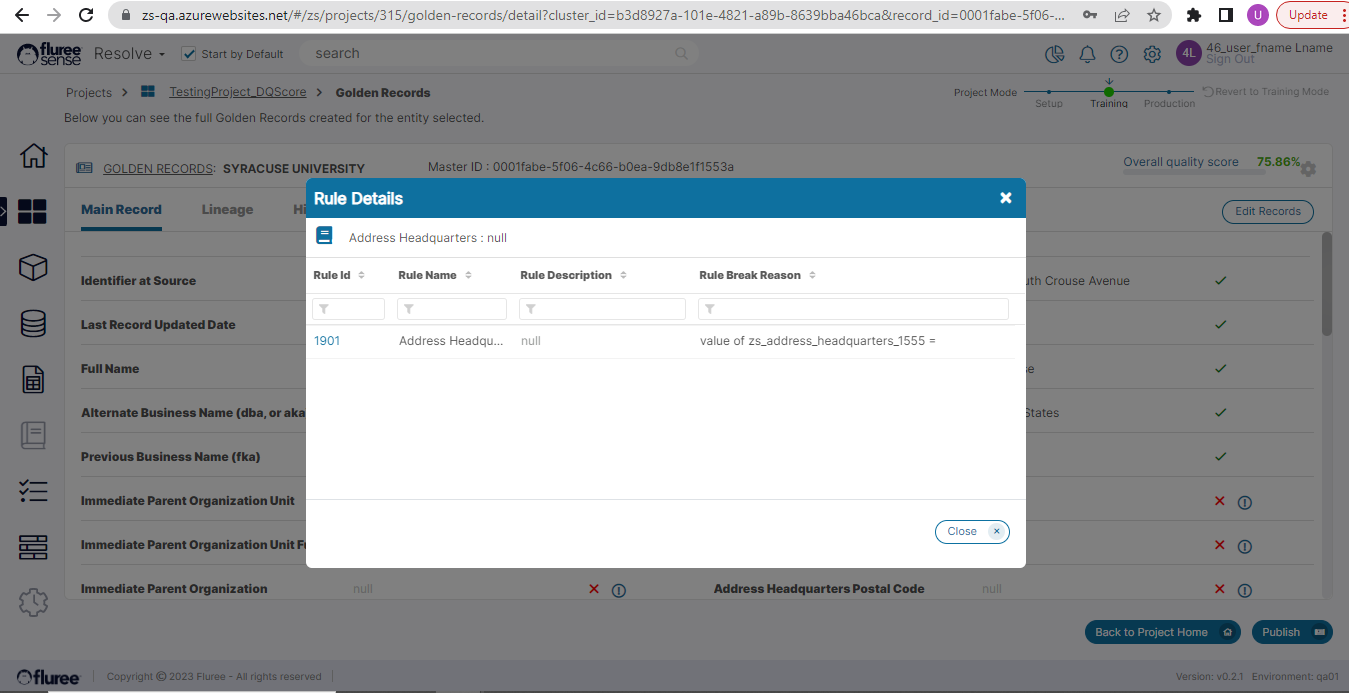 We’ve talked about the Data Quality of Golden Records in the earlier section. Apart from metrics and summary information on quality, the system also provides details of exceptions and rules that caused conflict pertaining to EACH Golden Record.